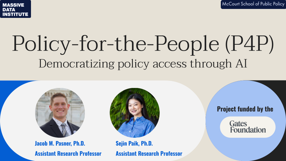 Assistant Research Professors, Jake Pasner and Sejin Paik received $497,389 from the Gates Foundation for Policy-for-the-People (P4P), an AI-supported statute research tool…
